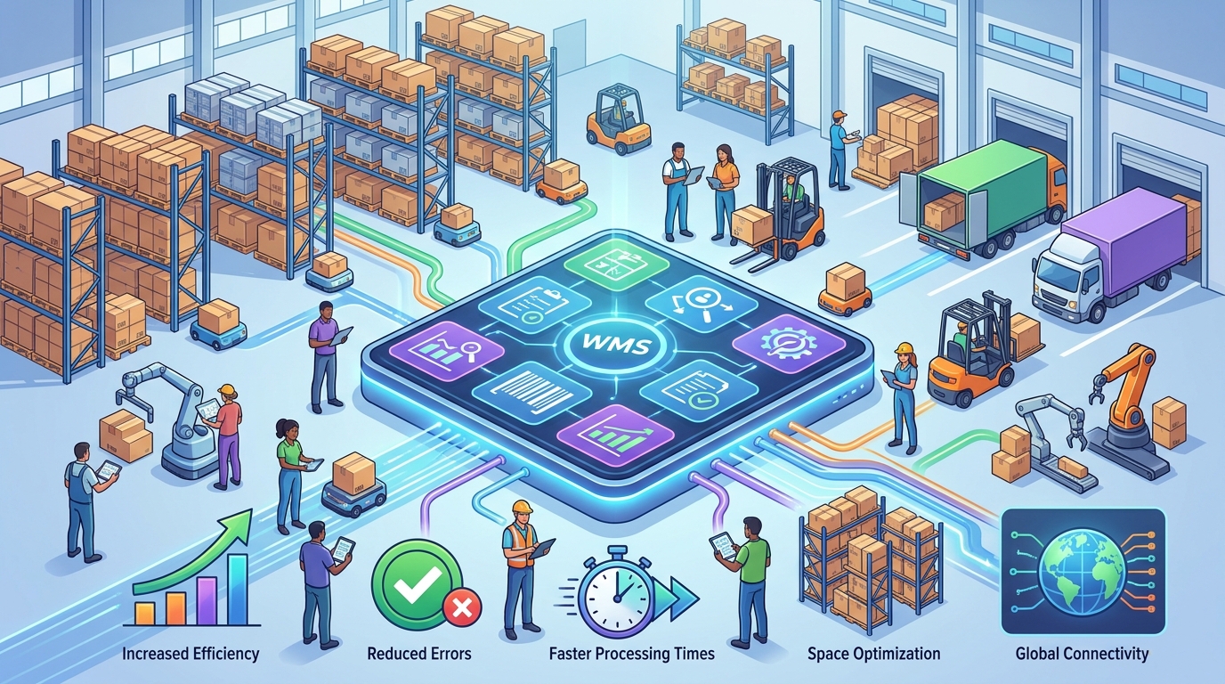 WMS — это специализированная система, которая управляет складскими операциями в режиме, близком к реальному времени: от приемки и размещения до комплектации, упаковки и отгрузки. Ее ключевая задача — обеспечить точное выполнение операций по правилам склада и обеспечить контроль на каждом шаге.
